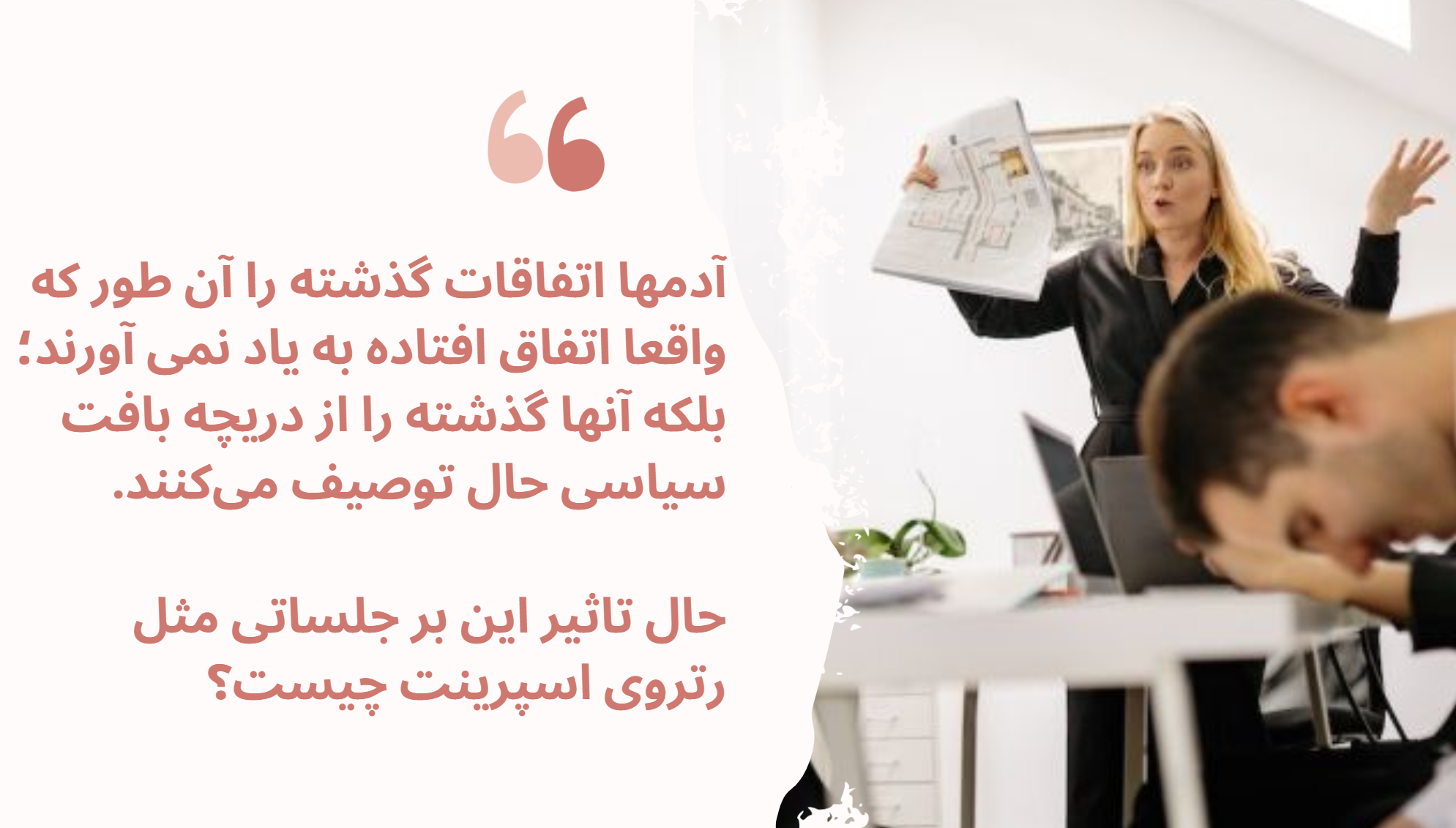 یا ساده تر، ما اتفات را بر اساس شرایط حال الان خودمان بیاد میاوریم، مثلا الان خوشحال باشیم، شاید گذشته را خوب بیاد بیاوریم، یا برعکس.